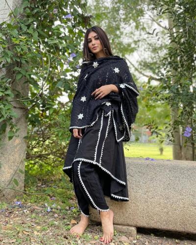 ब्लैक सूट में मौनी रॉय का स्टाइलिश अंदाज उनके फैंस को काफी पसंद आ रहा है। (फोटो: इंस्टाग्राम)