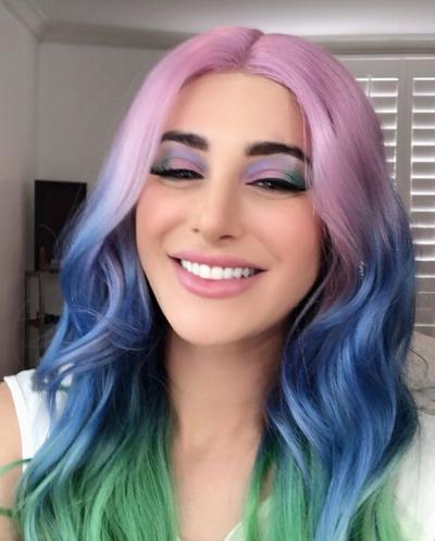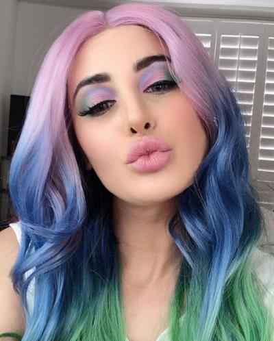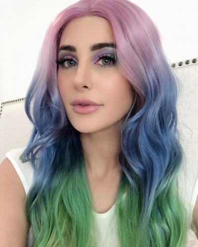 ट्राई कलर हेयर विग लगाए हुए नरगिस क्यूट डिज्नी प्रिंसेस लग रही हैं।