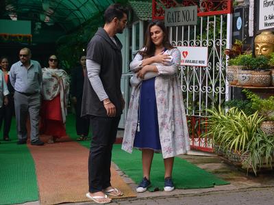 बेटी मेहर से साथ पहली बार आईं नेहा धूपिया, देखें अस्पताल से निकलते की खास फोटो