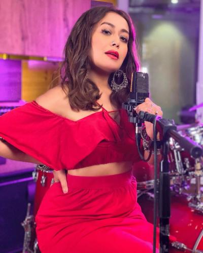 फोटोज में नेहा कक्कड़ रेड कलर के क्रॉप टॉप और बेल बॉटम पैंट्स में नजर आ रही हैं। (फोटो: इंस्टाग्राम)