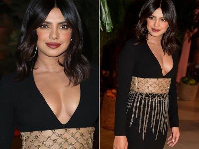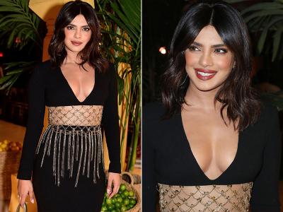 प्रियंका इस दौरान फुल स्लीव्स की ब्लैक बॉडी कोन ड्रेस में दिखाई दीं।