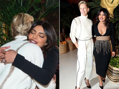 प्रियंका इस फैशन वीक के दौरान हॉलीवुड मॉडल Karolína Kurková को हग करती नजर आईं।