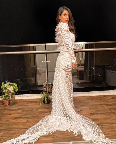 निया शर्मा सफेद जालीदार ड्रेस में बेहद स्टाइलिश अंदाज में नजर आईं। (फोटो: इंस्टाग्राम)