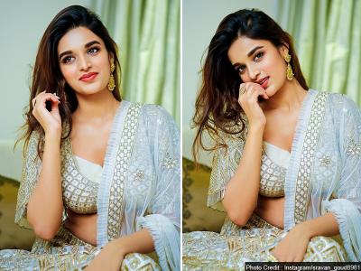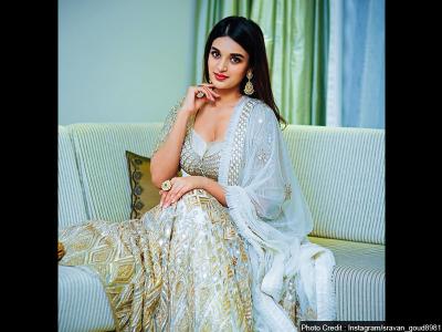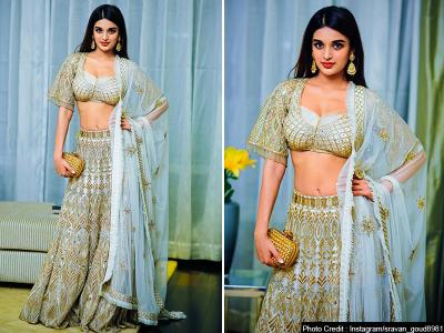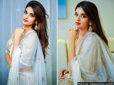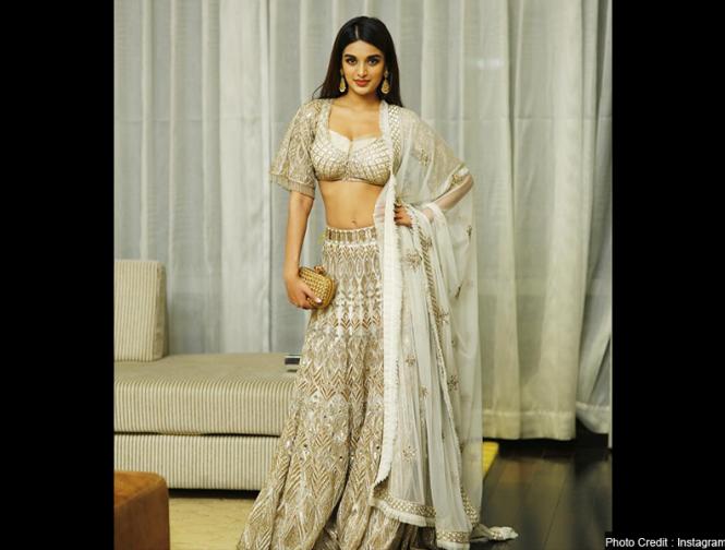 व्हाइट रंग के लहंगे में निधि गॉर्जियस लग रही हैं।