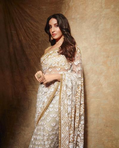 Nora Fatehi Photos: सफेद ट्रांसपेरेंट साड़ी में नोरा फतेही का स्टनिंग अवतार, देखें तस्वीरें