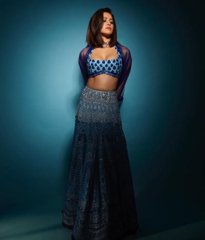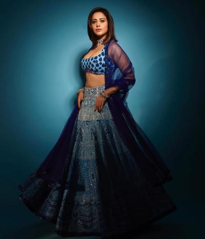 ब्लू कलर के लहंगे में नुसरत भरूचा बेहद खूबसूरत लग रही हैं, डीपनेक ब्लाउज में लूटी महफिल