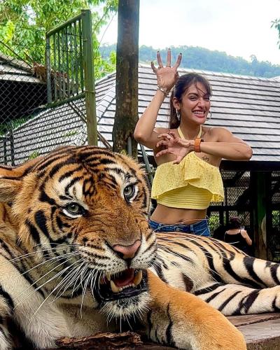 सोशल मीडिया पर नुसरत की टाइगर और हाथी के साथ वाली तस्वीरें खूब वायरल हो रही हैं। (फोटो: इंस्टाग्राम)