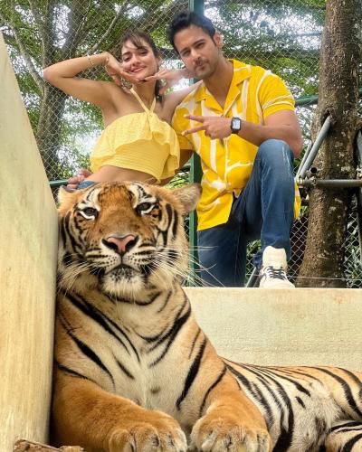 इन तस्वीरों में नुसरत और यश दासगुप्ता चीता और तेंदुआ के साथ फोटो के लिए पोज दिए। (फोटो: इंस्टाग्राम)