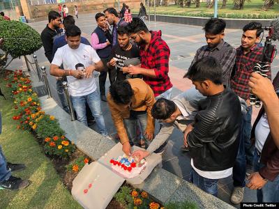 दिल्ली के सिनेमा घर के बाहर फैंस ने केक काटकर फिल्म को सेलिब्रेट किया है