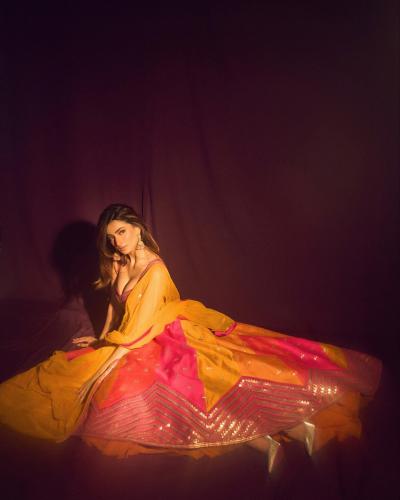 इन तस्वीरों में पलक ने पीले और गुलाबी रंग के कॉम्बिनेशन में लहंगा चोली पहने हुए हैं, जिसमें वे बला की खूबसूरत लग रही हैं। (फोटो: इंस्टाग्राम)
