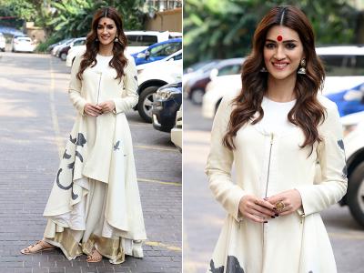 बॉलीवुड एक्ट्रेस कृति सेनन भी क्रीम कलर की शानदार ड्रेस में काफी खूबसूरत लग रही थीं।
