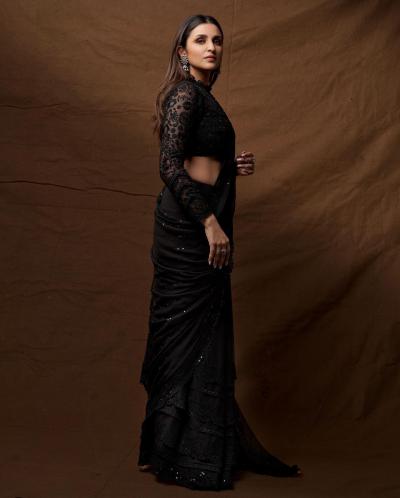 परिणीति चोपड़ा ने ब्लैक साड़ी में ढाया कहर, कैमरे के सामने दिए कातिलाना पोज