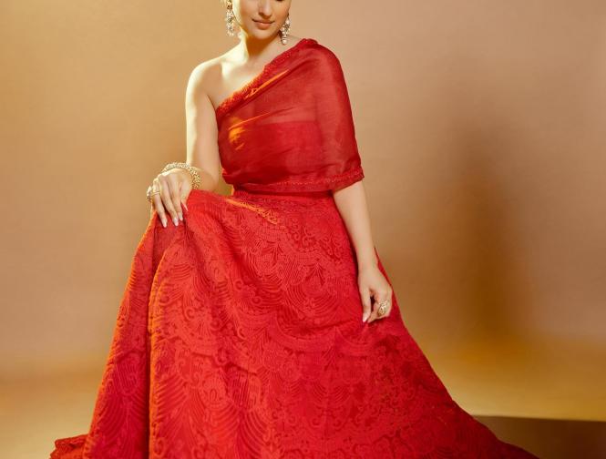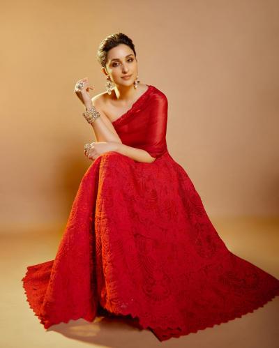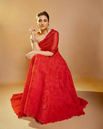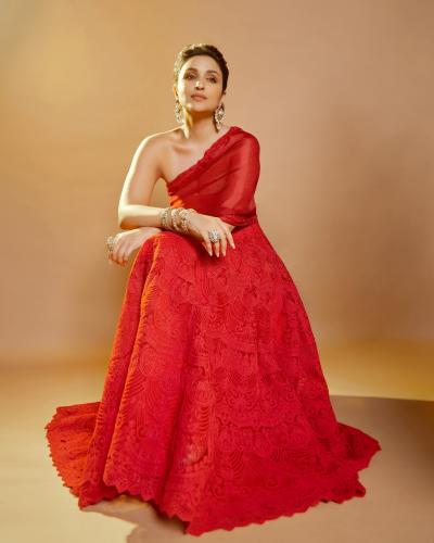 इन तस्वीरों में परिणीति चोपड़ा रेड कलर का वन शोल्डर गाउन में नजर आ रही है। (फोटो: इंस्टाग्राम)