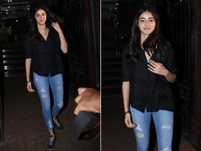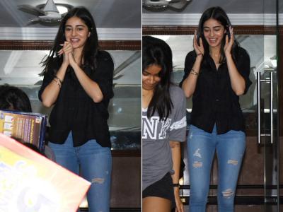 इस दौरान अनन्या ब्लैक शर्ट के साथ ब्लू जीन्स में दिखीं।