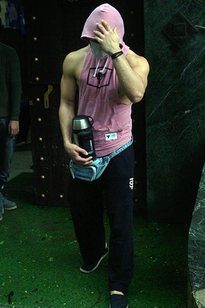बॉलीवुड एक्टर टाइगर श्रॉफ कैमरे से चेहरे को छिपाते नजर आए।