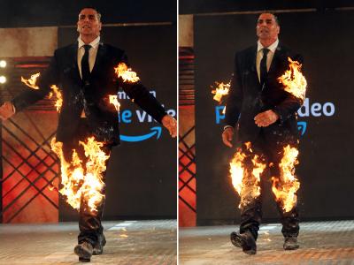 अक्षय कुमार ने खुद को आग लगा की रैंप वॉक, दर्शकों के छूटे पसीने
