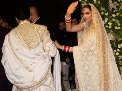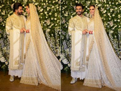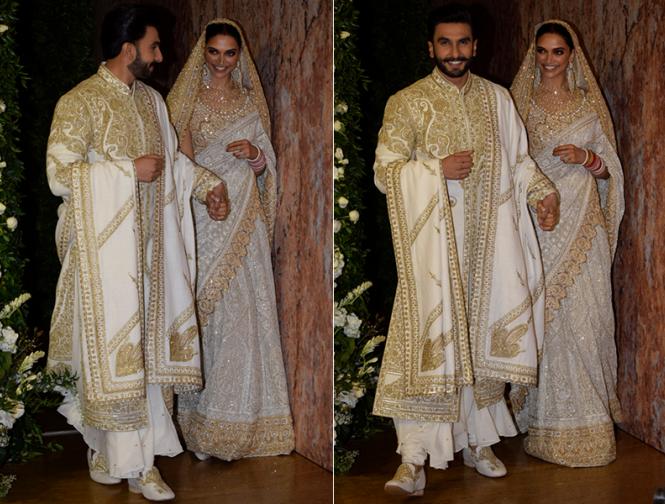 मुंबई के रिसेप्शन में दीपिका के इस लुक को मशहूर डिजाइनर अबू जानी संदीप खोसला ने तैयार किया है और रणवीर सिंह की ड्रेस रोहित बहल ने तैयार की है।