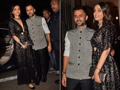 सोनम कपूर अपने पति आनंद आहूजा के साथ आईं नजर।