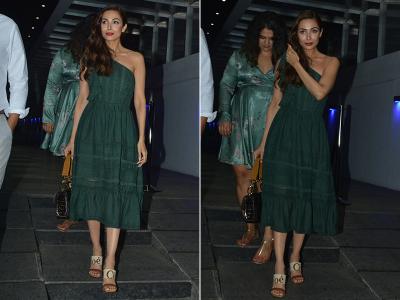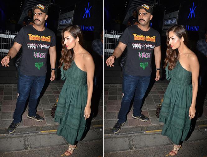 मलाइका इस दौरान ग्रीन कलर की ऑउटफिट में दिखीं वहीं अर्जुन कैजुअल लुक के साथ ब्लैक टी-शर्ट के साथ ब्लू जीन्स में दिखे।