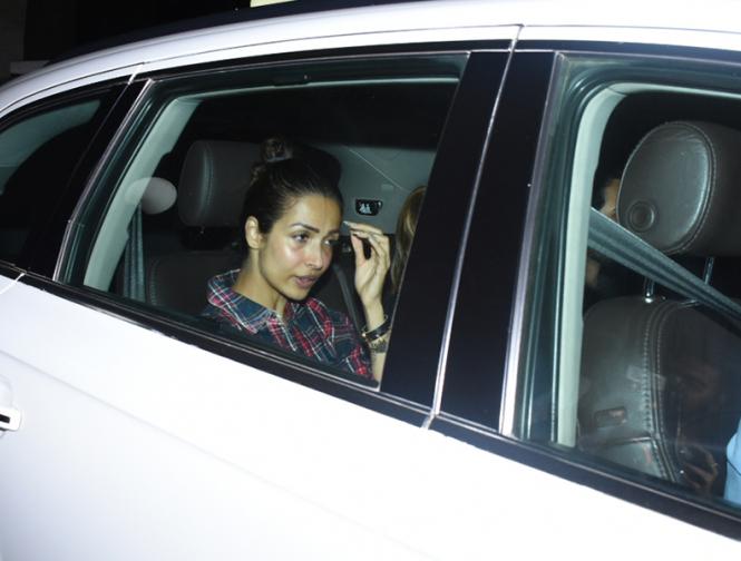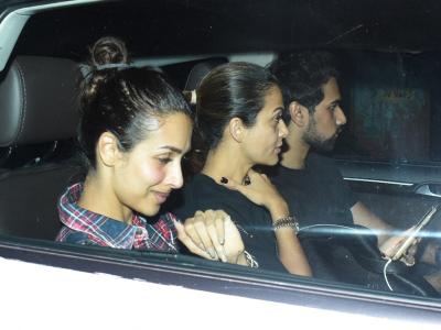 मलाइका के साथ उनकी बहन अमृता अरोड़ा भी उनके साथ गाड़ी में दिखाई दीं।
