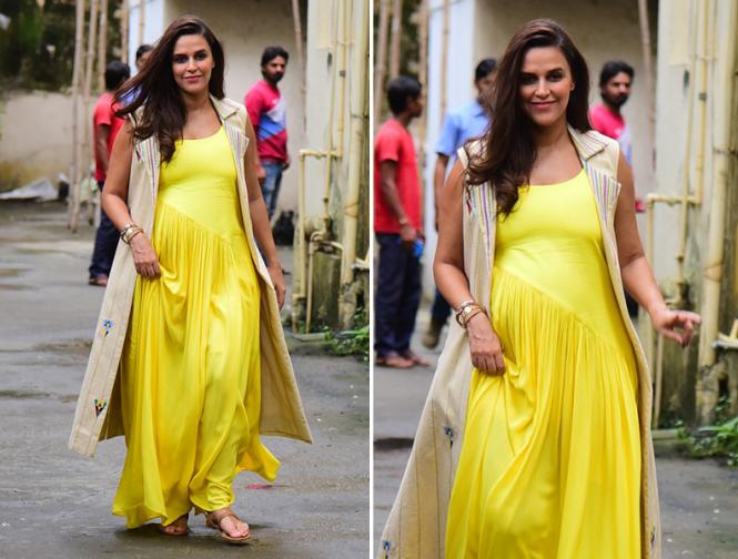 नेहा धूपिया येल्लो कलर की ड्रेस में बांद्रा में नजर आईं।