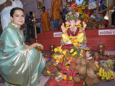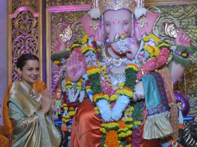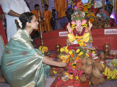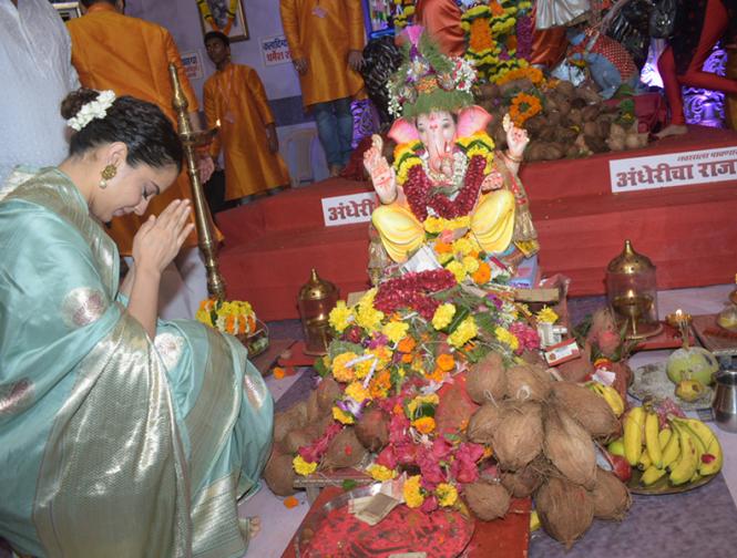 इस दौरान कंगना ने पूरी भक्ति से गणपति की पूजा की।