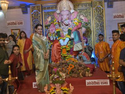 अंधेरीचा राजा मुंबई के प्रसिद्ध गणेश पंडाल में से एक हैं, जिनका आशीर्वाद कंगना ने लिया।