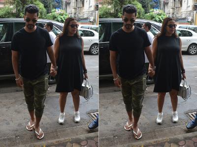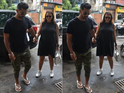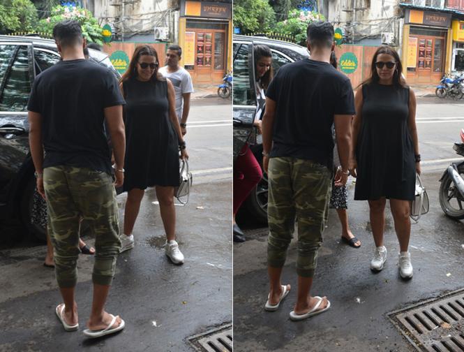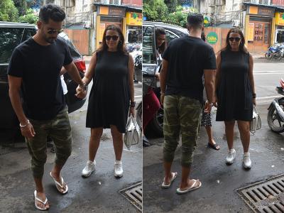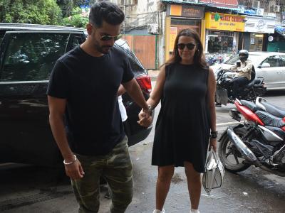 नेहा और अंगद इस दौरान काले रंग के कपड़ों में नजर आए और दोनों को मुंबई में लंच डेट के दौरान स्पॉट किया गया।