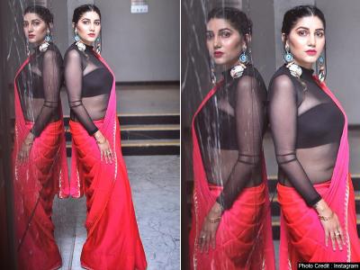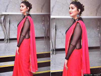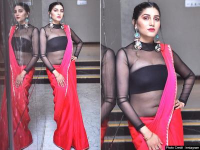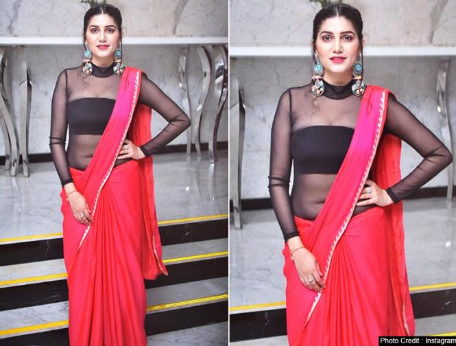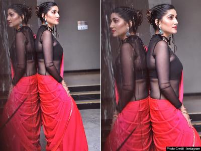 इन पिक्स में सपना लाल साड़ी पहने दिखाई दीं।
