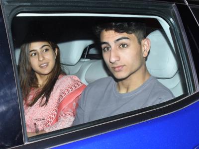 'सिम्बा' गर्ल सारा अली खान भाई इब्राहिम के साथ पापा सैफ से मिलने उनके घर पहुंचीं, Pics में देखें गॉर्जियस लुक