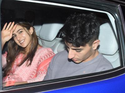 सारा अली खान इस समय अपनी आने वाली फिल्म 'लव आजकल 2' की शूटिंग में काफी व्यस्त हैं, लेकिन अपने बिजी शेड्यूल से समय निकाल कर सारा अपने भाई इब्राहिम अली खान के साथ पाप सैफ के घर उनसे मिलने पहुंची। इस दौरान उनकी कई तस्वीरें कैमरे में कैद हुईं।