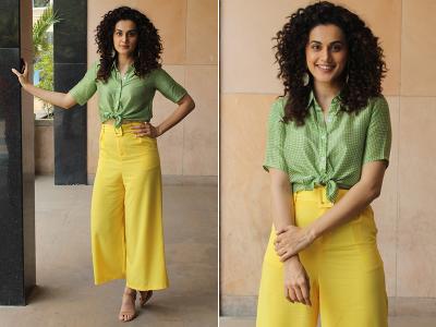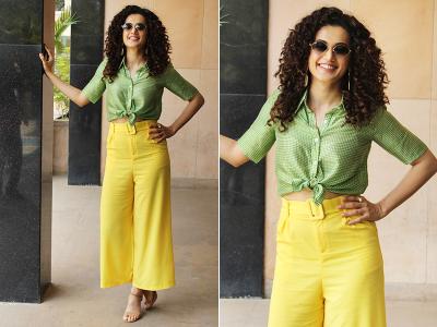 इस दौरान तापसी का ग्रीन शर्ट और येलो पेंट में नजर आईं, जिसमे वो काफी आकर्षक लग रही हैं।