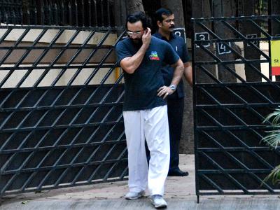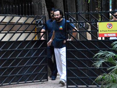 सैफ अली खान इस दौरान ब्लू कलर टी-शर्ट और सफेद ट्राउजर में नजर आए।