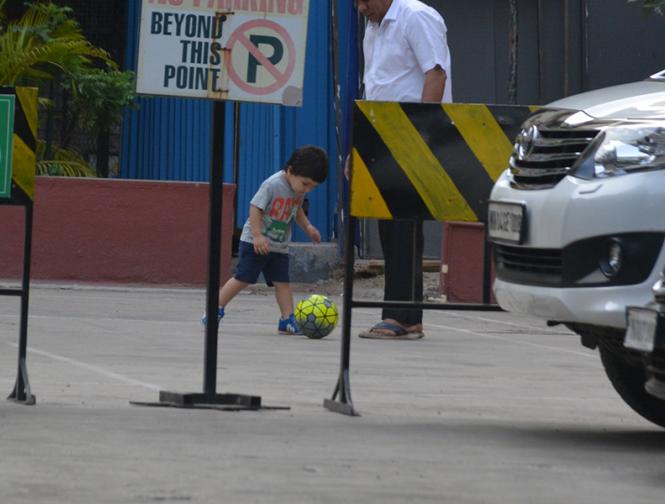 बॉलीवुड इंडस्ट्री के सबसे पॉपुलर स्टारकिड तैमूर अली खान आज मुंबई के बांद्रा में अपने घर के बाहर फुटबॉल खेलते हुए नजर आए।