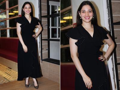 तमन्ना इस दौरान ब्लैक कलर की बोल्ड ड्रेस में दिखीं।