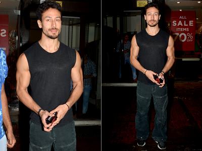 ब्लैक कलर की टी-शर्ट और ब्लैक पेंट में टाइगर श्रॉफ का लुक हुआ कैमरे में कैद।