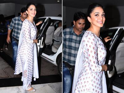 इसी बीच किआरा मशहूर फैशन डिज़ाइनर मनीष मल्होत्रा के घर निकलते वक़्त स्पॉट हुईं।