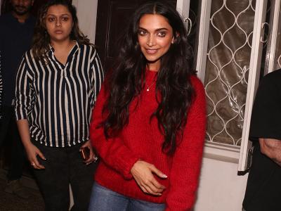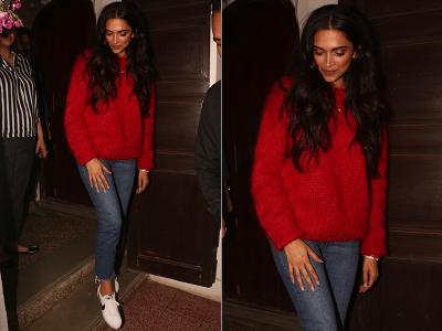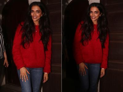 इस दौरान दीपिका रेड कलर के स्वेटर के साथ ब्लू कलर की जीन्स में नजर आईं, दीपिका इस लुक में बेहद खूबसूरत लग रही है।