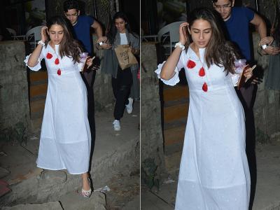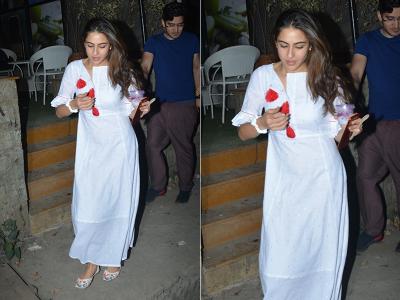 वाइट कलर की इस सिंपल ड्रेस में सारा अली खान हमेशा की तरह बेहद खूबसूरत और डैशिंग नजर आ रही हैं।