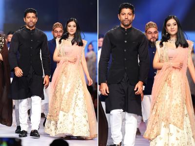 फरहान अख्तर के साथ बॉलीवुड एक्ट्रेस अमृता राव रैंप वॉक करती दिखीं