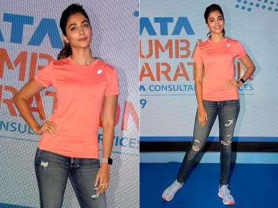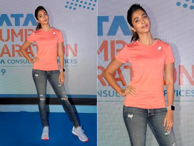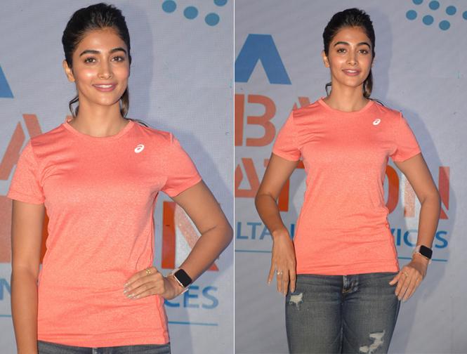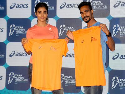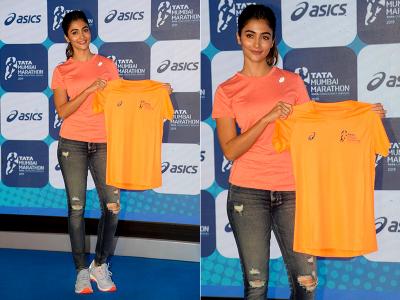 भिनेत्री पूजा हेगड़े मुंबई में गुरुवार को हुए 201 9 के टाटा मुंबई मैराथन के असिक्स रेस डे जर्सी के लॉन्च के मौके पर पहुंची