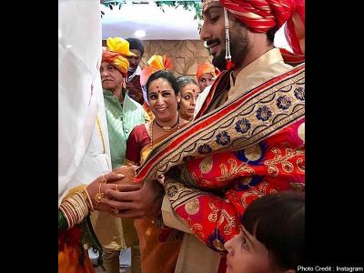 इन दोनों ने मराठी रीति रिवाजों की तरह कपड़े पहन रखे थे।