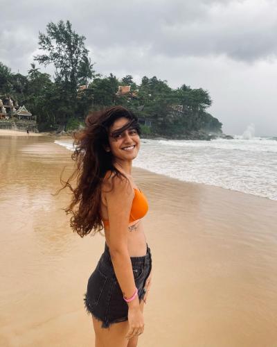 तस्वीरों में प्रिया प्रकाश वारियर समंदर में मस्ती करती नजर आ रही हैं। (फोटो इंस्टाग्राम)