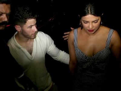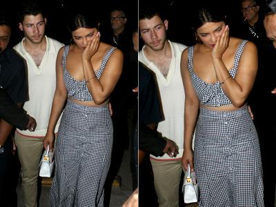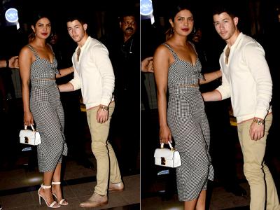 प्रियंका इस डिनर डेट पर चैका का ड्रेस पहने नजर आईं, जबकि निक यहां वाइट शर्ट और ट्राउजर्स में दिखे।
