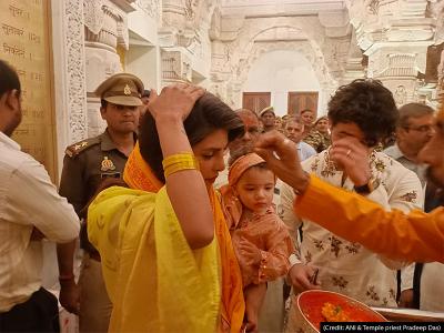 प्रियंका ने अपने परिवार के साथ राम लला के दर्शन किए, इस दौरान प्रियंका के साथ पुलिस अधिकारी भी नजर आए।