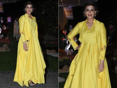 सोनाली बेंद्रे होली पार्टी में येलो कलर की ड्रेस में नजर आईं।