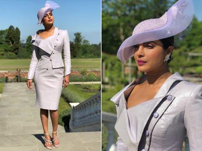 प्रियंका चोपड़ा यहां बेहद खूबसूरत फॉर्मल ली-लेंथ ड्रेस और हैट में यहां नजर आईं।