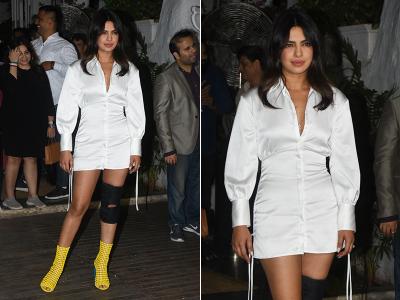 प्रियंका इस पार्टी में व्हाइट ड्रेस और येलो बूट्स लुक में पहुंचीं।