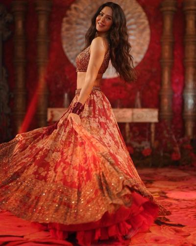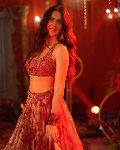 इन तस्वीरों में सोनम बाजवा एक लाल रंग के लहंगे में नजर आ रही हैं. जिसमे वो बहुत खूबसूरत लग रही हैं। (फोटो: इंस्टाग्राम)