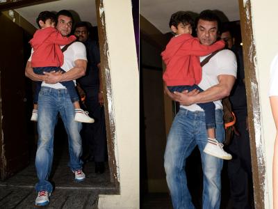 सलमान के भाई सोहेल खान अपने बेटे के साथ 'रेस 3' देखने पहुंचे थे...